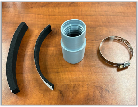 Kit to connect a 1.5 inch hose to a 2/2.5/3 inches inlet