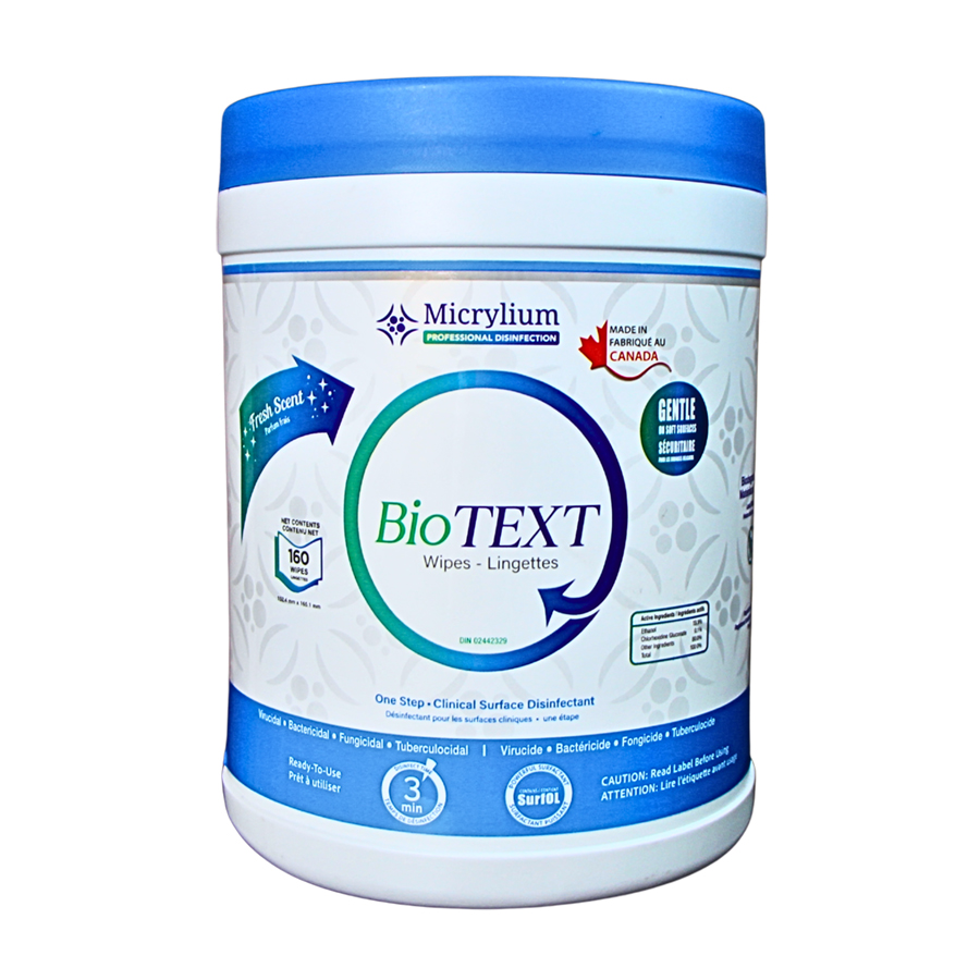 BioTEXT est la seule lingette désinfectante prête à l’emploi à large spectre, de qualité clinique et alimentaire, spécialement formulée pour une utilisation sur les surfaces délicates ou irrégulières.