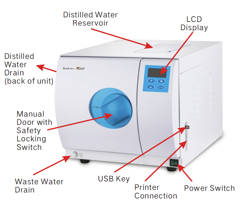 Le Clave16+ utilise des composants de la plus haute qualité et chaque unité est soumise à des tests de résistance afin de garantir sa qualité et sa fiabilité. Stérilisateur compact et performant, le Clave16+ convient à tous les cabinets dentaires, vétérinaires, podologiques, de pédicurie, de tatouage et médicaux.